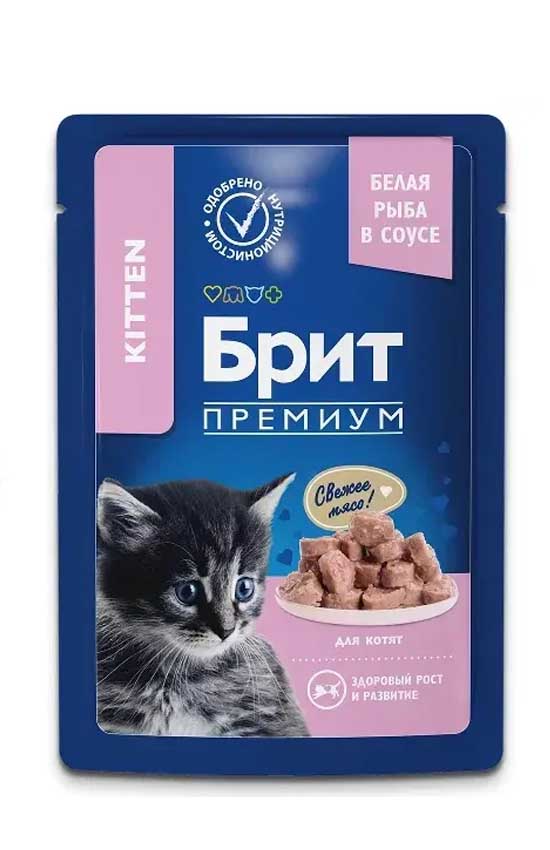 Brit Premium пауч для котят белая рыба в соусе, 85 г - полнорационный влажный корм премиум класса.