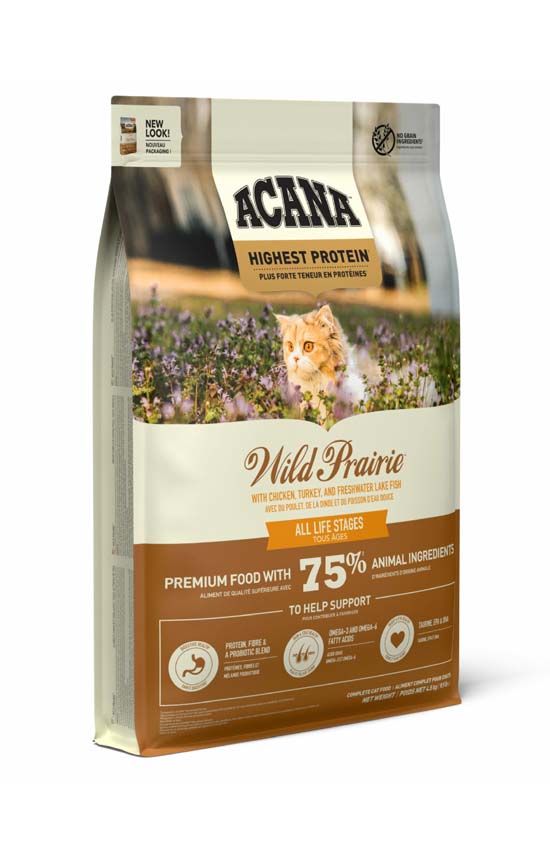 Кошки биологически нуждаются в рационе, богатом белком из цельных животных ингредиентов. Вдохновленный просторами обширных прерий и нетронутых озер, ACANA WILD PRAIRIE предлагает кошкам ингредиенты животного происхождения из выращенных на свободном выгуле курицы и индейки, пресноводной рыбы, а также свежих цельных яиц. Корм богат белком в соответствии WholePrey™, поэтому ваша кошка получает все необходимое для максимального здоровья.