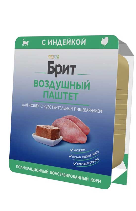Брит Премиум Воздушный паштет для кошек с чувствительным пищеварением (Индейка) – влажный корм для кошек с индейкой.
