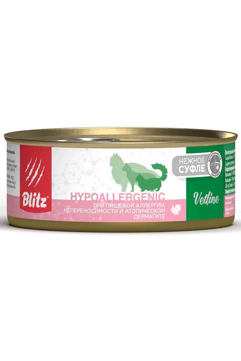 Влажный диетический корм Blitz Vetline Hypoallergenic Cat для кошек при аллергии, непереносимости и атопическом дерматите (Индейка), 100 г.