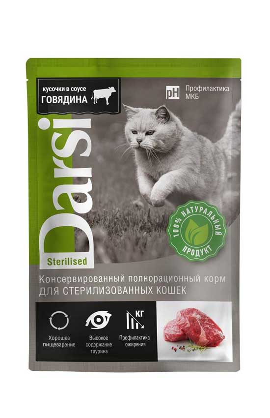 Darsi Sterilised Пауч для кошек (Говядина) - консервированный полнорационный корм для стерилизованных кошек.