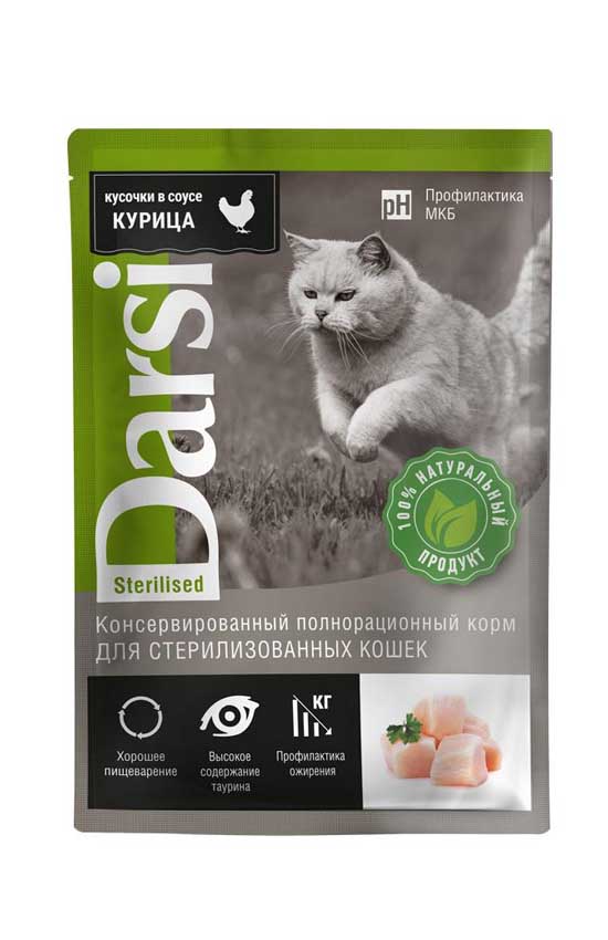 Darsi Sterilised Пауч для кошек (Курица) — консервированный полнорационный корм для стерилизованных кошек.
