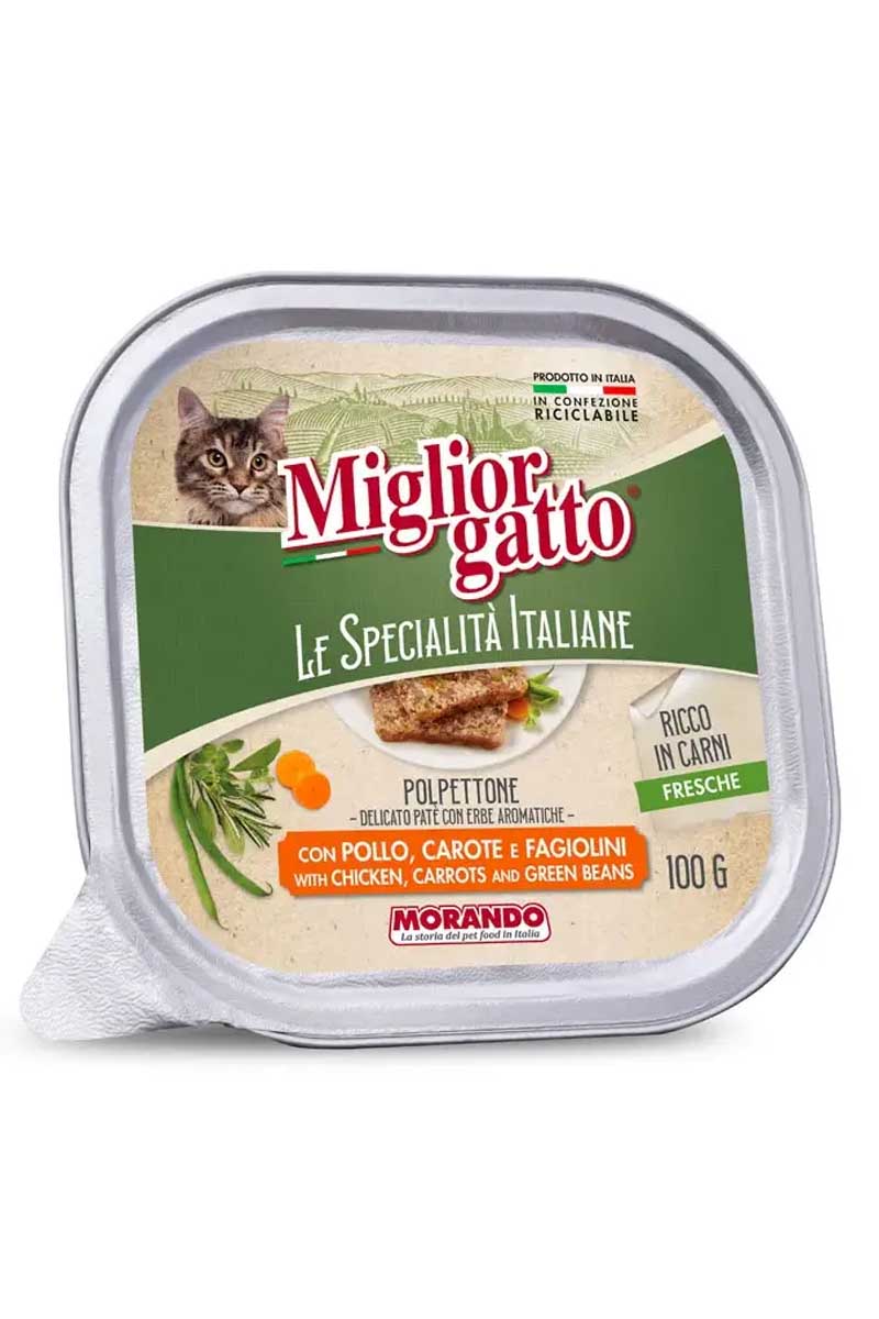 Влажный корм Miglior gatto Le Specialità Italiane (Паштет) для взрослых кошек c курицей, морковью и фасолью, 100 г.