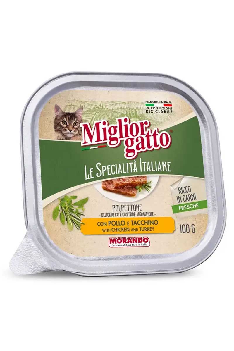 Влажный корм Miglior gatto Le Specialità Italiane (Паштет) для взрослых кошек с курицей и индейкой, 100 г.