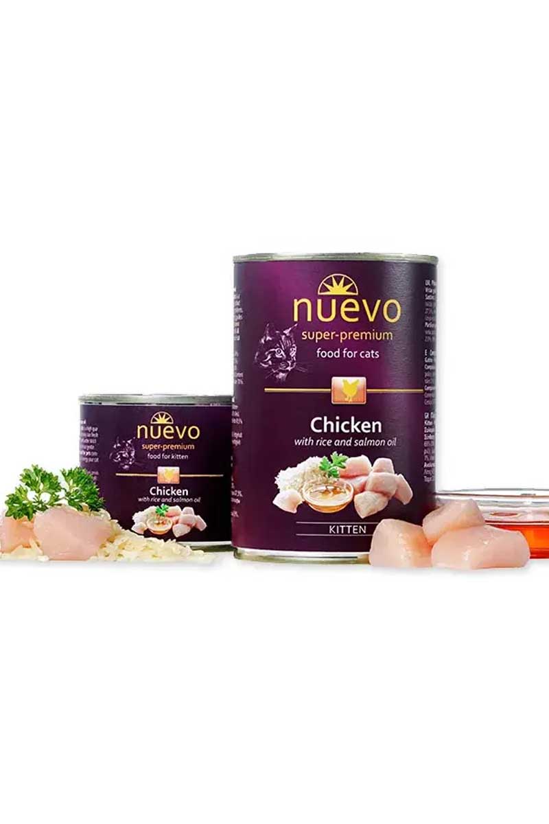 Консервы суперпремиум-качества NUEVO для котят с курицей, рисом и лососевым жиром, 200 г.