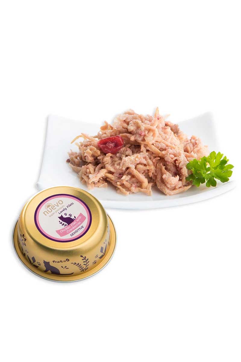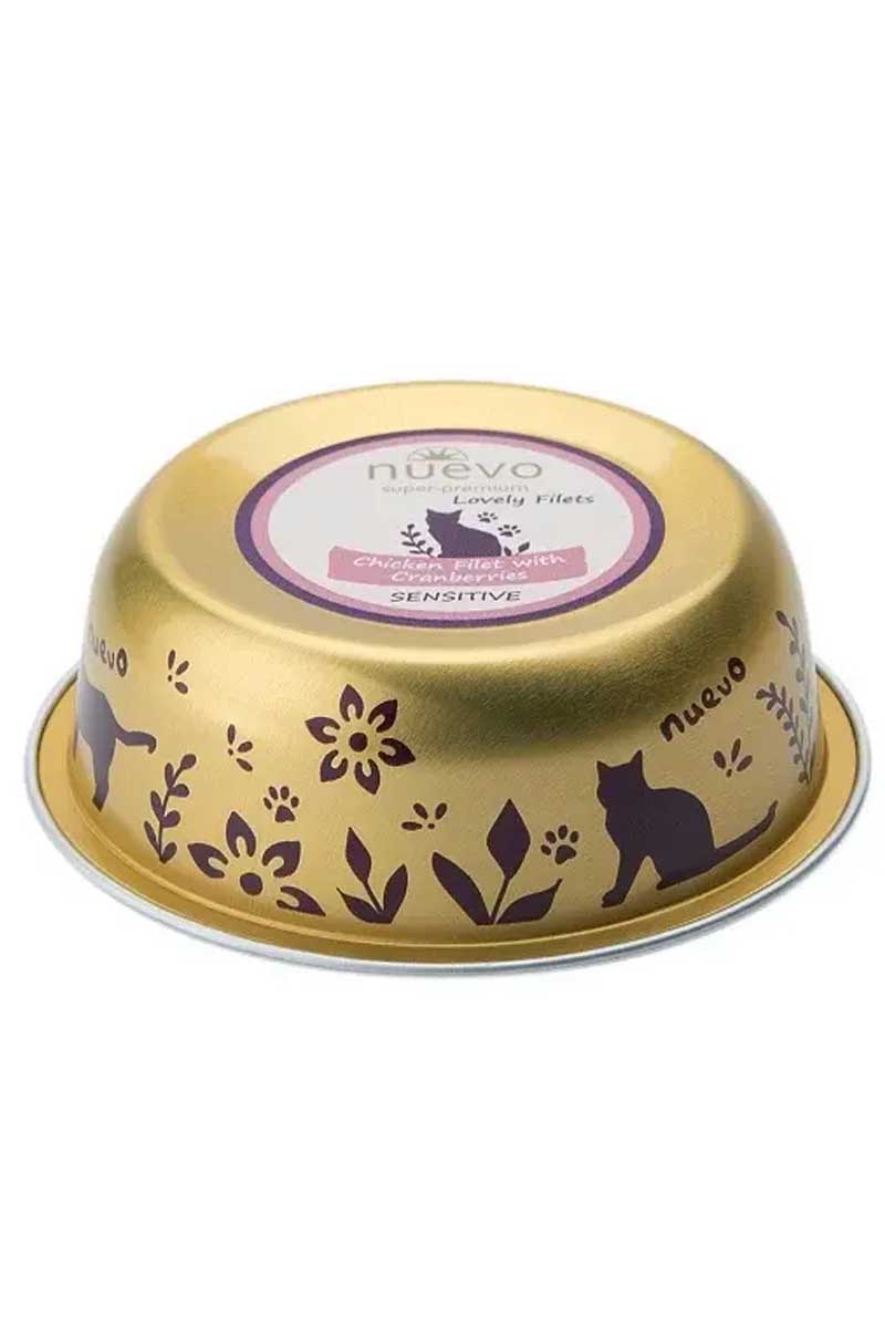 Nuevo Lovely Filet Sensitive (Куриное филе с клюквой) — супер-премиальные консервы для взрослых кошек с чувствительным пищеварением с куриным филе, клюквой и льняным маслом.