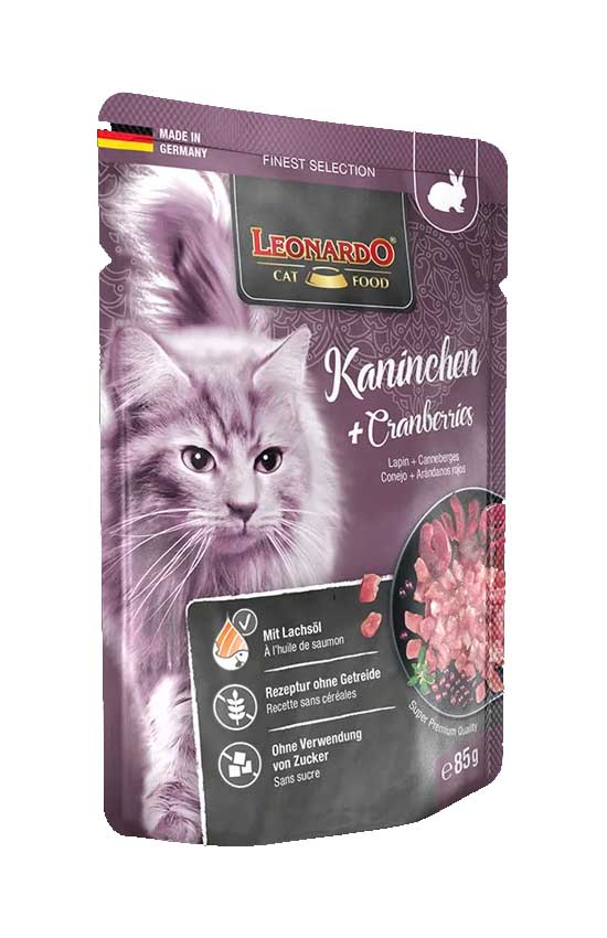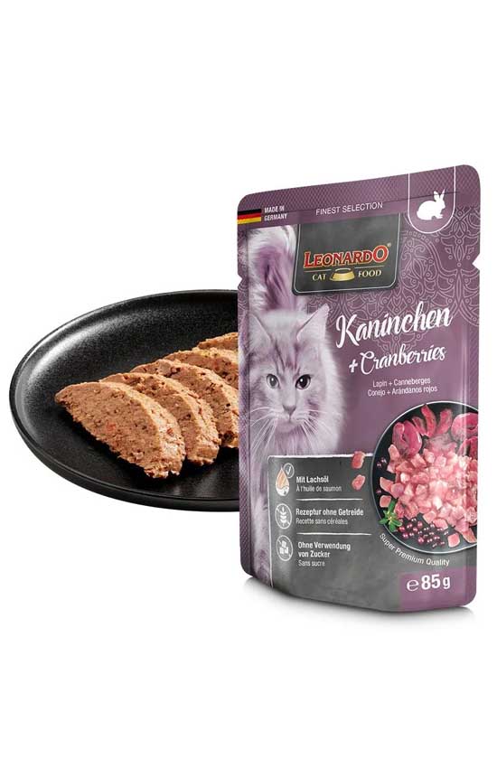 Leonardo Rabbit + Cranberries (кролик, клюква), 85 г - консервы суперпремиум класса для взрослых кошек.