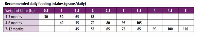 Инструкция по применению: рекомендуемое ежедневное потребление пищи (см. Таблицу) может быть разделено на 3 приема пищи в день. Индивидуальные потребности в питании могут варьироваться в зависимости от размера, возраста и уровня активности животного. Убедитесь, что у вас всегда под рукой чистая и свежая вода. Когда этот продукт заменяет другой вид корма и / или диеты, рекомендуется вводить его постепенно в течение как минимум одной недели. Только корм для домашних животных, не пригодный для употребления в пищу.