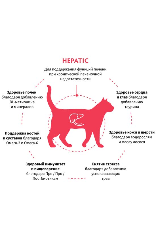 Рекомендации: Перед использованием рекомендуется проконсультироваться с ветеринаром. Давать сухой корм Hepatic до 4 месяцев при первичном курсе лечения.