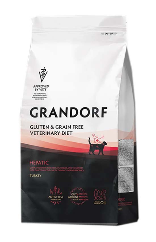 Grandorf Vet Cat Hepatic (Индейка) - диетический корм для кошек при хронической печеночной недостаточности.