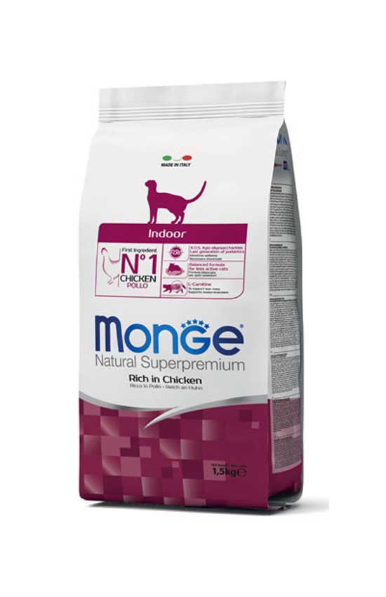 Корм супер премиум класса Monge Indoor Cat для кошек, живущих в помещении