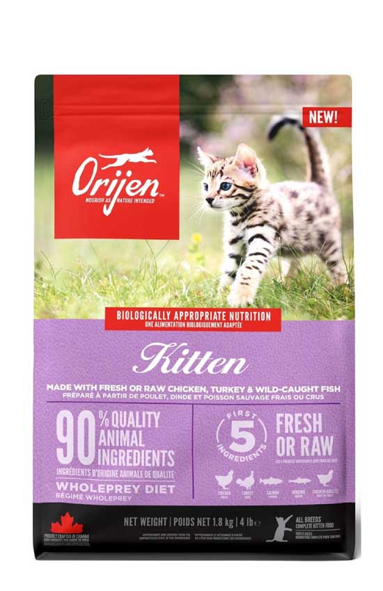ORIJEN Kitten - уникальная формула для здорового питания котенка в период бурного роста на основе свежего и сырого животного белка.