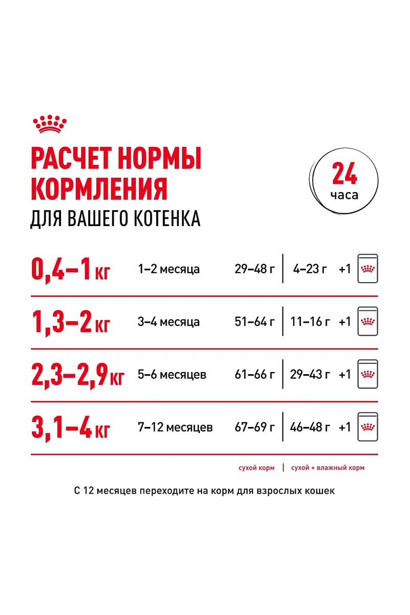 | Возраст | Вес, кг | Грамм корм | + 1 лоток BABYCAT Instinctive |