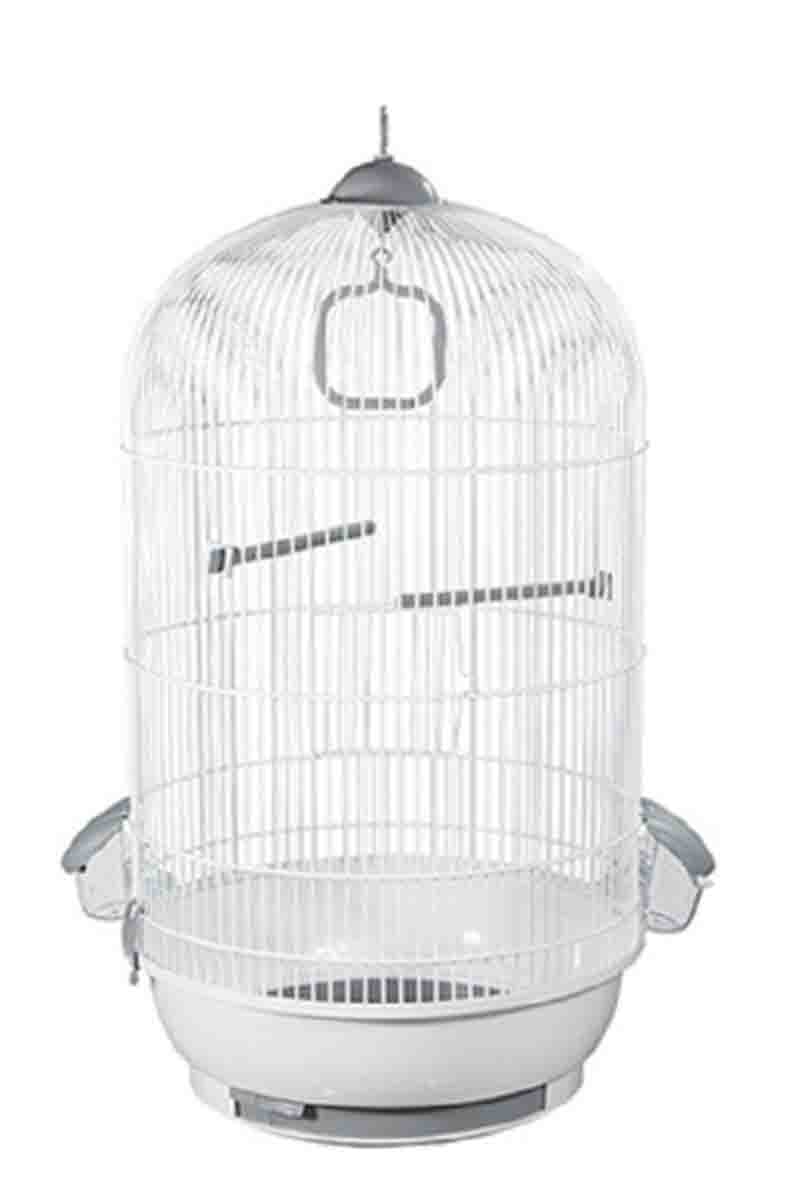 Клетка имеет классическую округлую форму. Сверху есть кольцо для подвешивания клетки в любом удобном месте.. Клетка комплектуется необходимыми аксессуарами, без которых просто невозможно содержать птичку. Это совместимая длинная жердочка, качель в виде колечка и две прозрачных пластиковых кормушки. Они находятся извне для простоты замены корма. Причем всегда заметно, когда пора подкормить питомца. Чистка клетки крайне упрощена – для этого можно просто вынуть поддон.