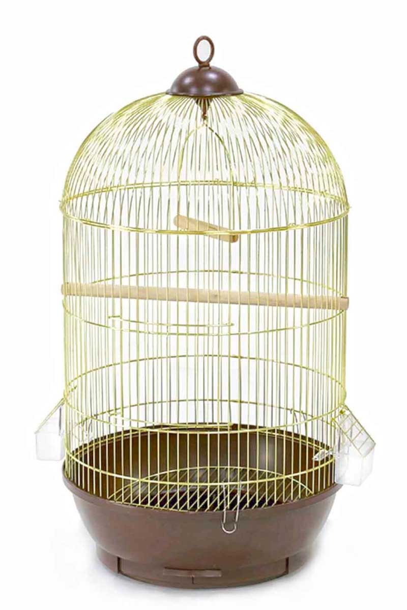 Клетка имеет классическую округлую форму. Сверху есть кольцо для подвешивания клетки в любом удобном месте. Прутья клетки оцинкованные, что создаёт видимость покрытия золотом. Клетка комплектуется необходимыми аксессуарами, без которых просто невозможно содержать птичку. Это совместимая длинная жердочка, качель в виде колечка и две прозрачных пластиковых кормушки. Они находятся извне для простоты замены корма. Причем всегда заметно, когда пора подкормить питомца. Чистка клетки крайне упрощена – для этого можно просто вынуть поддон.