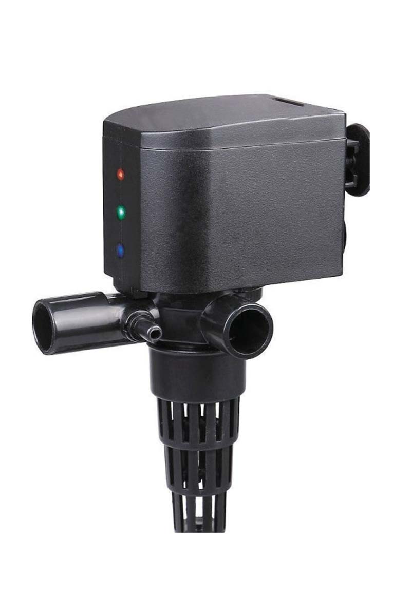 Помпа предназначена для фильтрации, слива, перекачки, подъема, перемешивания воды и насыщения ее кислородом. Прибор крепится внутри аквариума на присоски, расположенные на отдельном кронштейне. Для использования помпы в качестве фильтра на специальную насадку-конус следует установить губку. Помпы способны аэрировать воду с помощью силиконовой трубки, которая входит в комплект: она забирает воздух снаружи аквариума и насыщает им поток выходящей воды. Выходная насадка имеет два канала подачи воды. Один из них может использоваться для перемешивания, фильтрации и аэрации воды, а другой – для её подъема, например, для создания водопада.