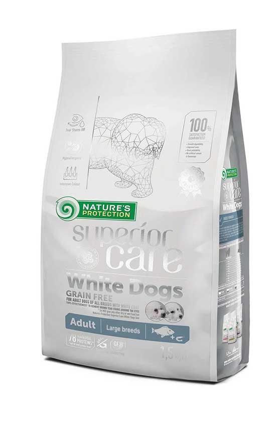 Сухой беззерновой корм Natures Protection Superior Care Whitе Dogs Grain Free Adult Large Breeds супер-премиум класса для взрослых собак больших пород с лососем