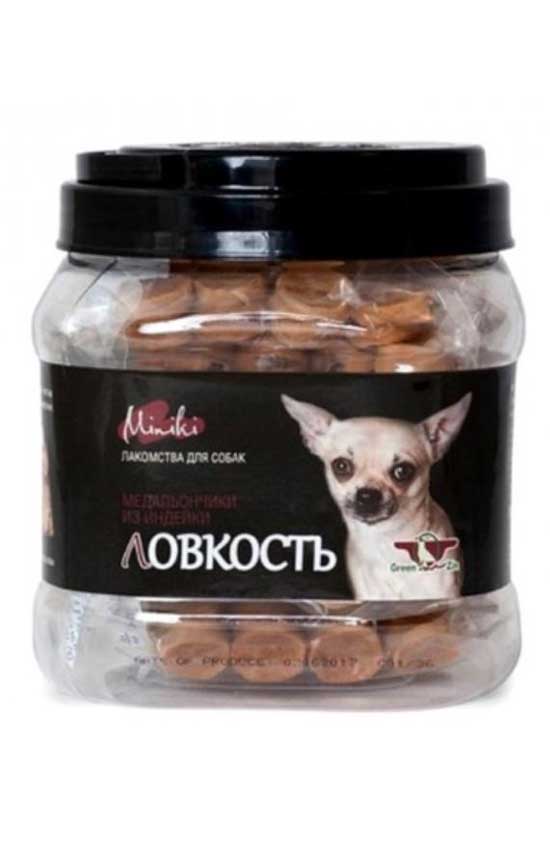 Лакомство GreenQZin Миники ЛОВКОСТЬ, 360 гр. Медальоны из индейки.