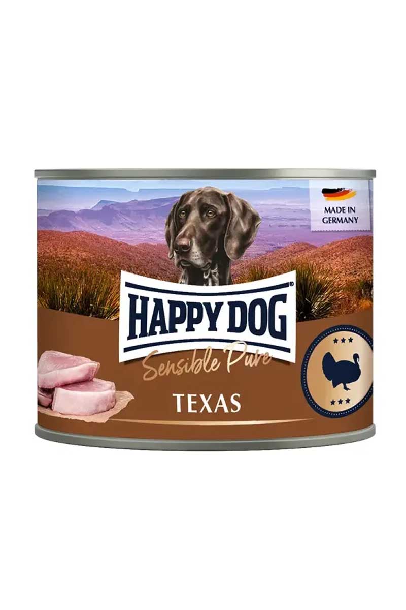 Happy Dog Sensible Pure Texas — это 100% животный белок из отборной индейки. Этот влажный корм содержит только ценное мясо и витаминные субпродукты одной единственной животной разновидности, что делает его идеальным выбором для собак с пищевой непереносимостью.