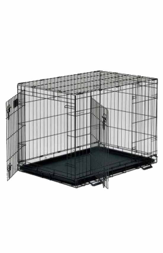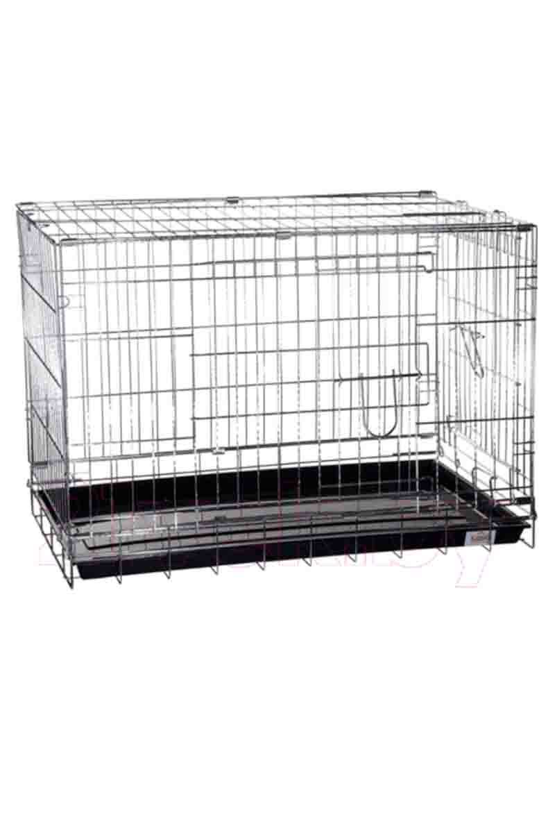 Клетка с фальшдном для собак малых пород, щенков. Выстовочная, для дома, для перевозки собак. Металл, две двери, открытие спереди и сбоку. Выдвижной пластиковый поддон. Прочные защелки. Компактно складывается.