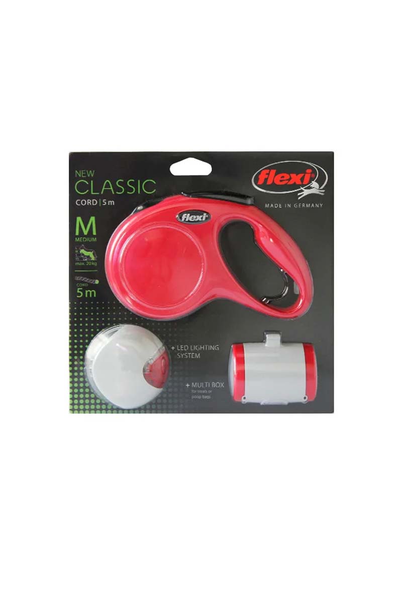 Комплект Рулетка Flexi New Classic M, трос, 5м 20кг + Фонарик LED + Multi Box - набор для прогулок с животными до 20 кг.
