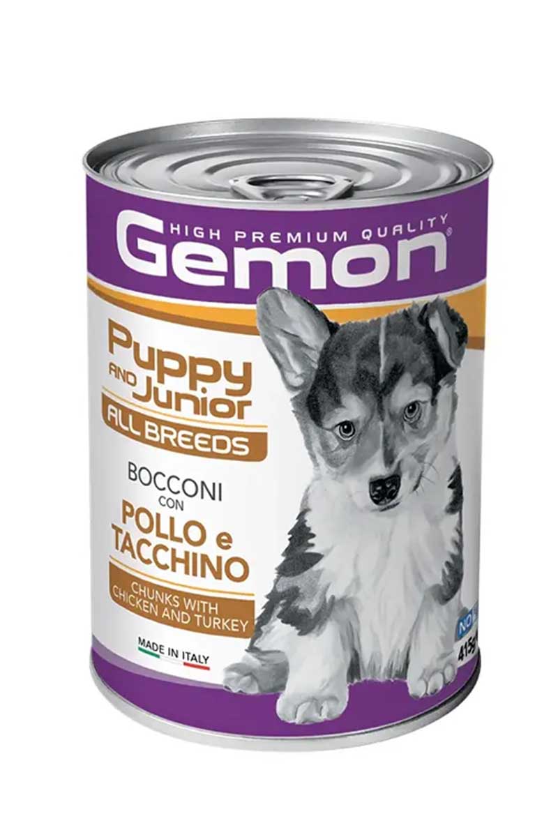 Консервы Gemon Dog Puppy Chicken/Turkey, 415 г. - кусочки с курицей и индейкой для щенков всех пород.