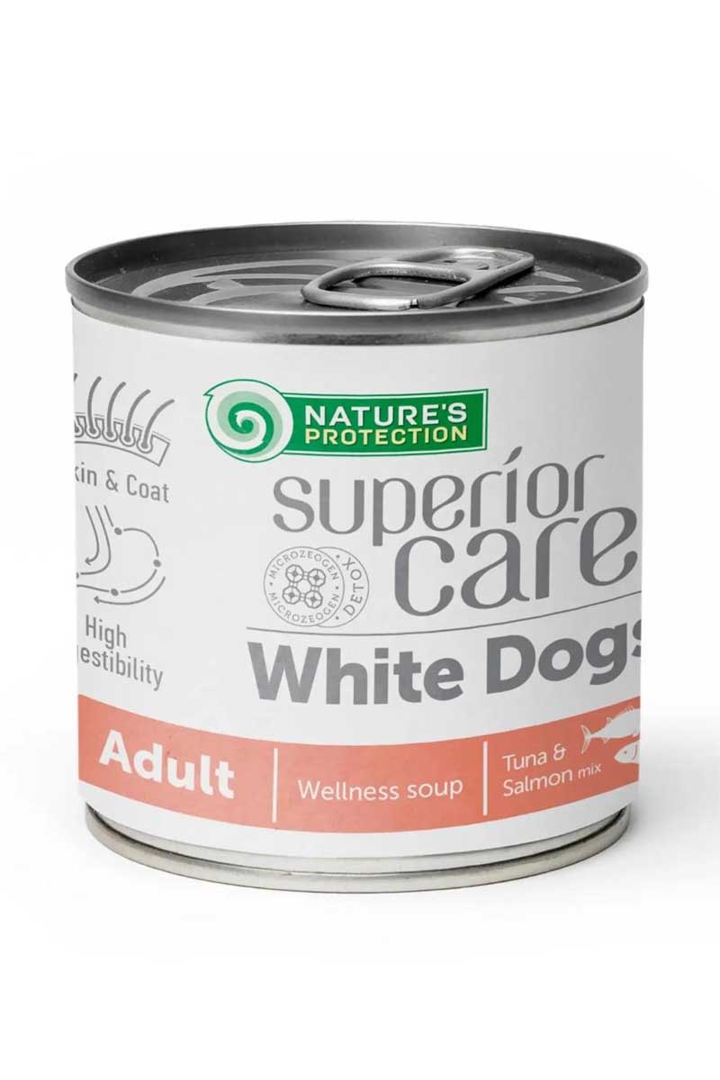 Консервы (Суп) для собак Natures Protection Superior Care White Dogs с белым окрасом шерсти с лососем и тунцом, 140 мл.