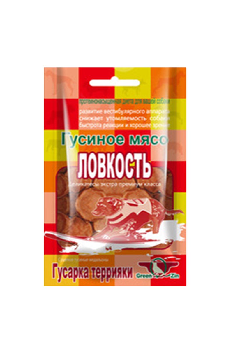 Лакомство GreenQZin ЛОВКОСТЬ, 80 гр. Сушеные гусиные медальоны.