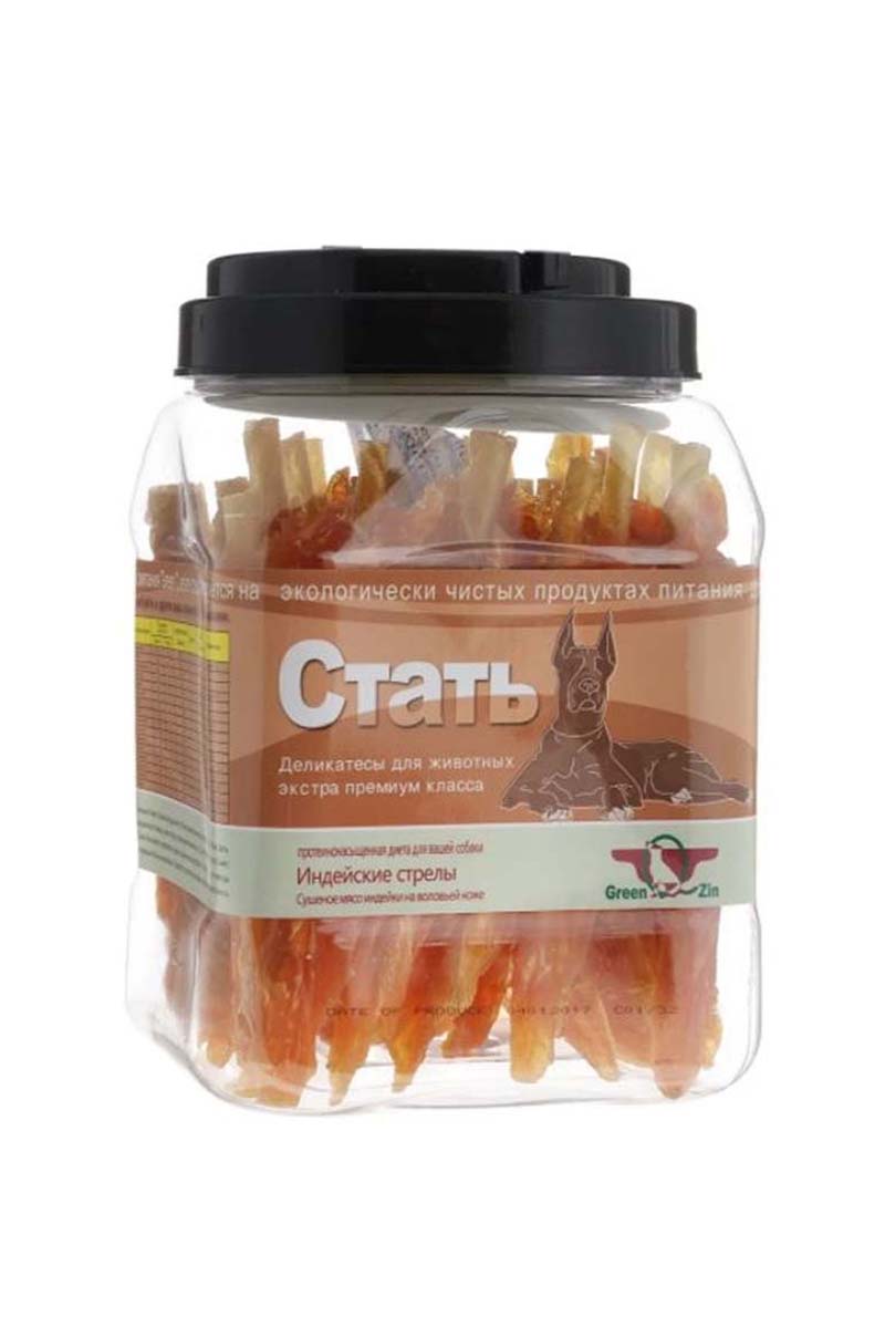 Лакомство GreenQZin СТАТЬ, 750 гр. Сушеное мясо индейки на воловьей коже.