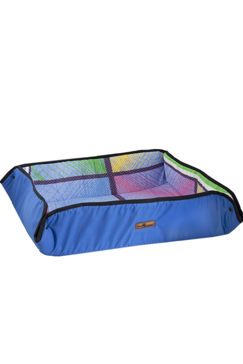 Может использоваться с бортиками, а так же в виде матраса: форма легко меняется с помощью кнопок. Лежанка очень практичная, изготовлена из плащевки и бязи.