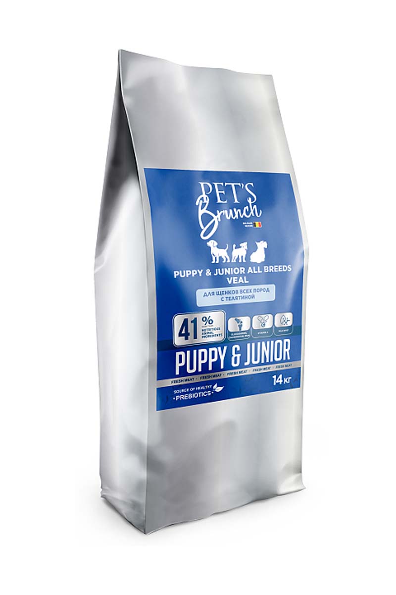 Pets Brunch Puppy&Junior All Breeds (телятина) - cухой корм для щенков всех пород от 2-х до 12 месяцев.