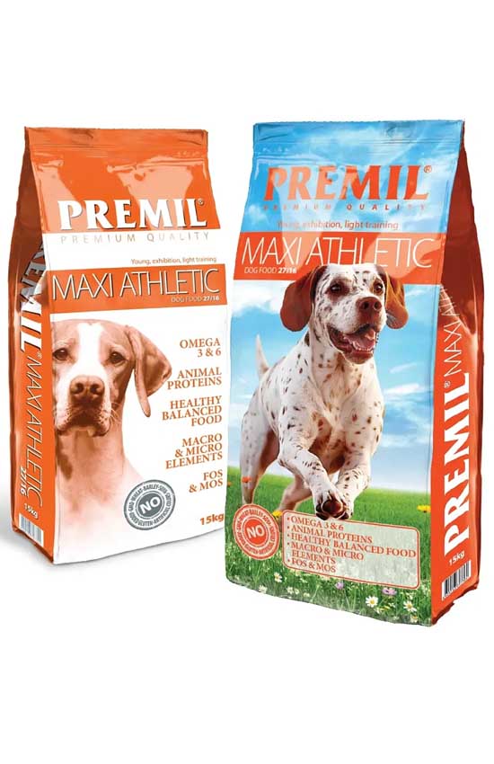 Полнорационный корм Premil Maxi Athletic премиум класса для активных молодых собак, которые ведут активный образ жизни.