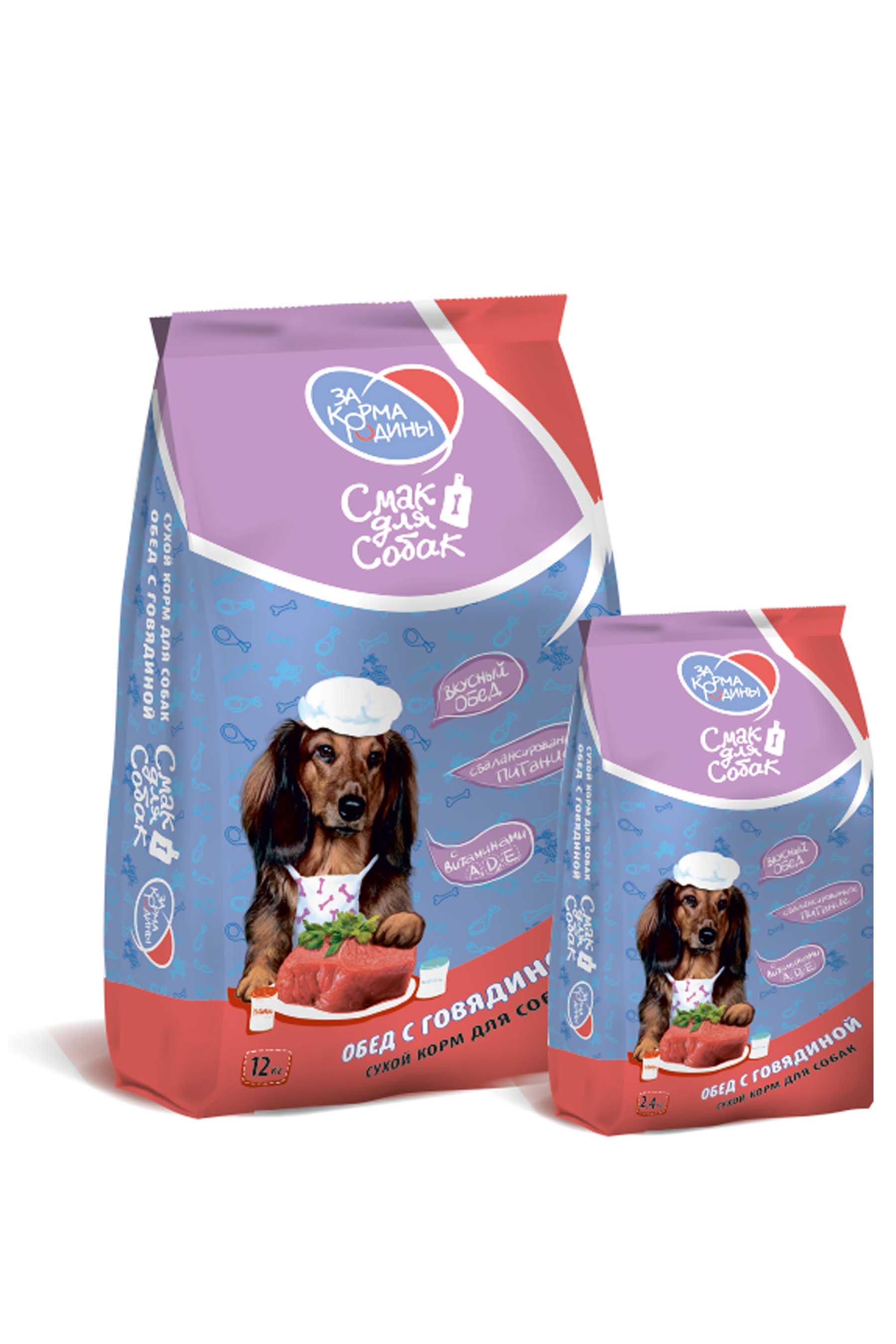 Сухой корм ЗА КОРМА РОДИНЫ для взрослых собак (Смак для собак. Обед с говядиной)