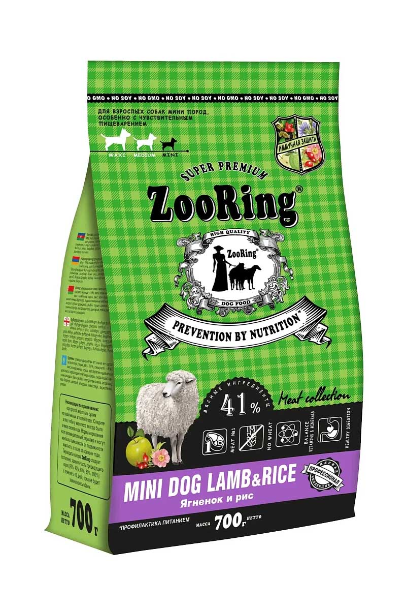 ZooRing Adult Mini Dog (Ягненок, рис) — полнорационный сухой корм для взрослых собак мини пород, особенно с чувствительным пищеварением.
